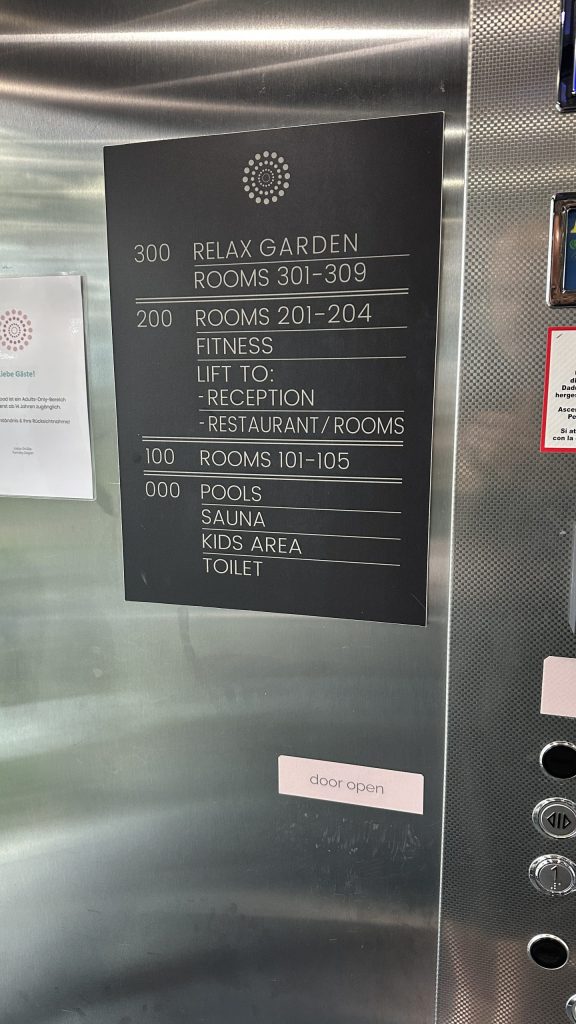 Vorher war ich Schwimmen, und hab nun – das ist das dritte Mal – den Weg zum Pool ohne Umwege gefunden. Man muss zwei Lifte benutzen, und dann die richtige Etage wählen. Und den richtigen Gang.