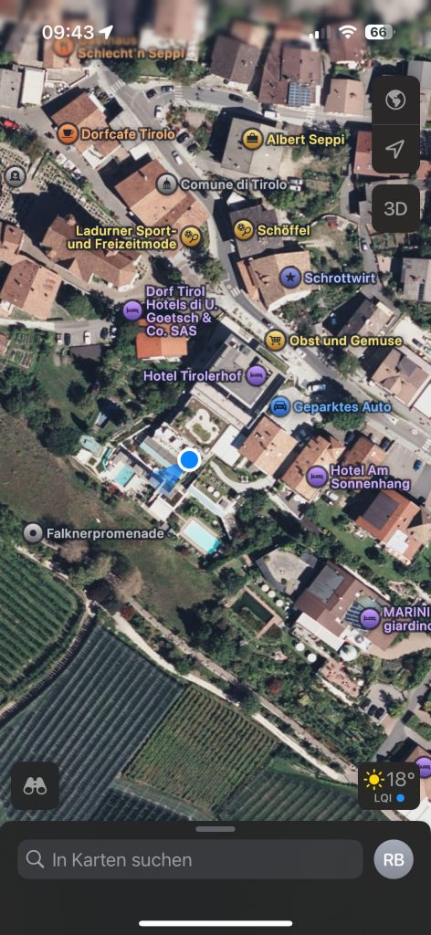 Unser Hotel ist noch relativ neu. Bei Google ist noch ein altes Bild, Apple ist da aktueller. Das Hotel ist von 2019 bis 2021 fast komplett neu gebaut worden.