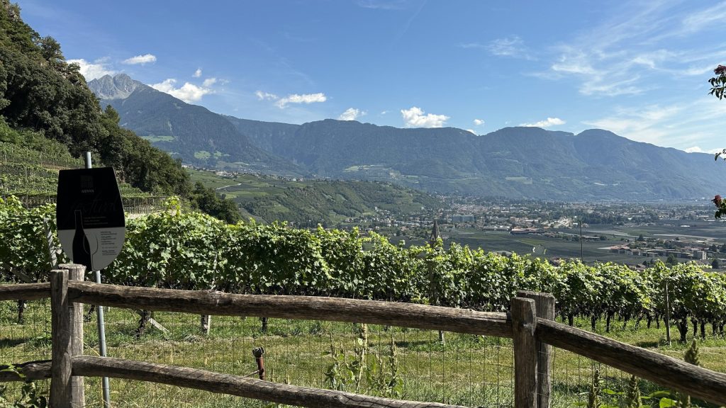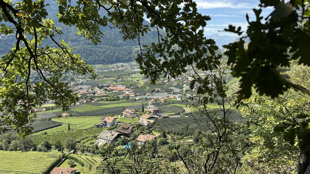 Man hat die ganze Zeit einen schönen Blick über das Meraner Tal und auf die Berge.