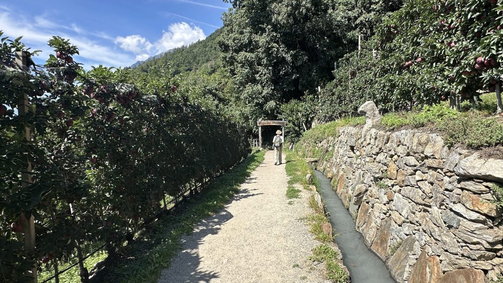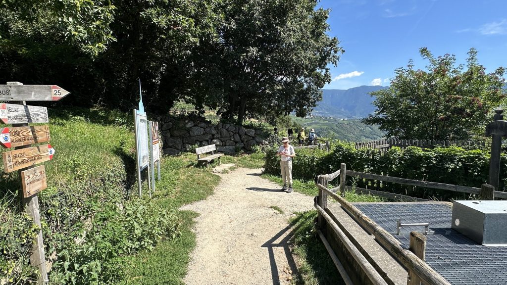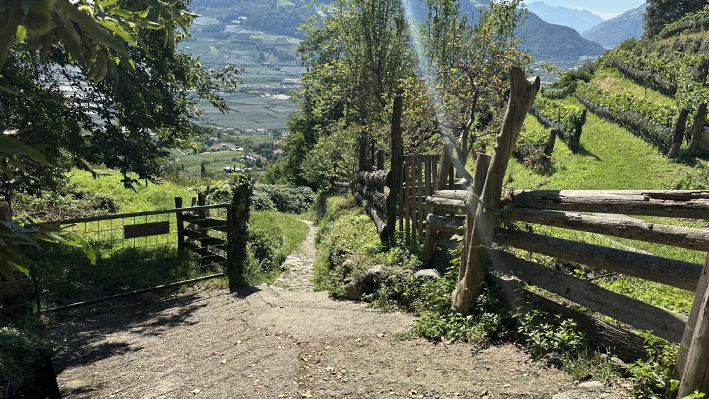 Ab Algund geht es über einen tiefer gelegenen Walweg wieder zurück Richtung Dorf Tirol.