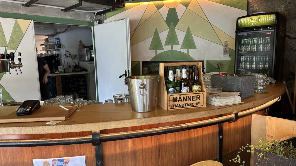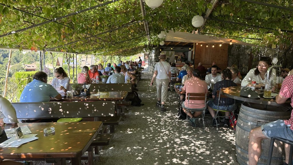 Zum Abschluss kehren wir noch in einem Biergarten ein. Der Wirt sieht mich zwar seltsam an als ich ein Tonic bestelle, aber nach zweimaligem Wiederholen bekomme ich es.