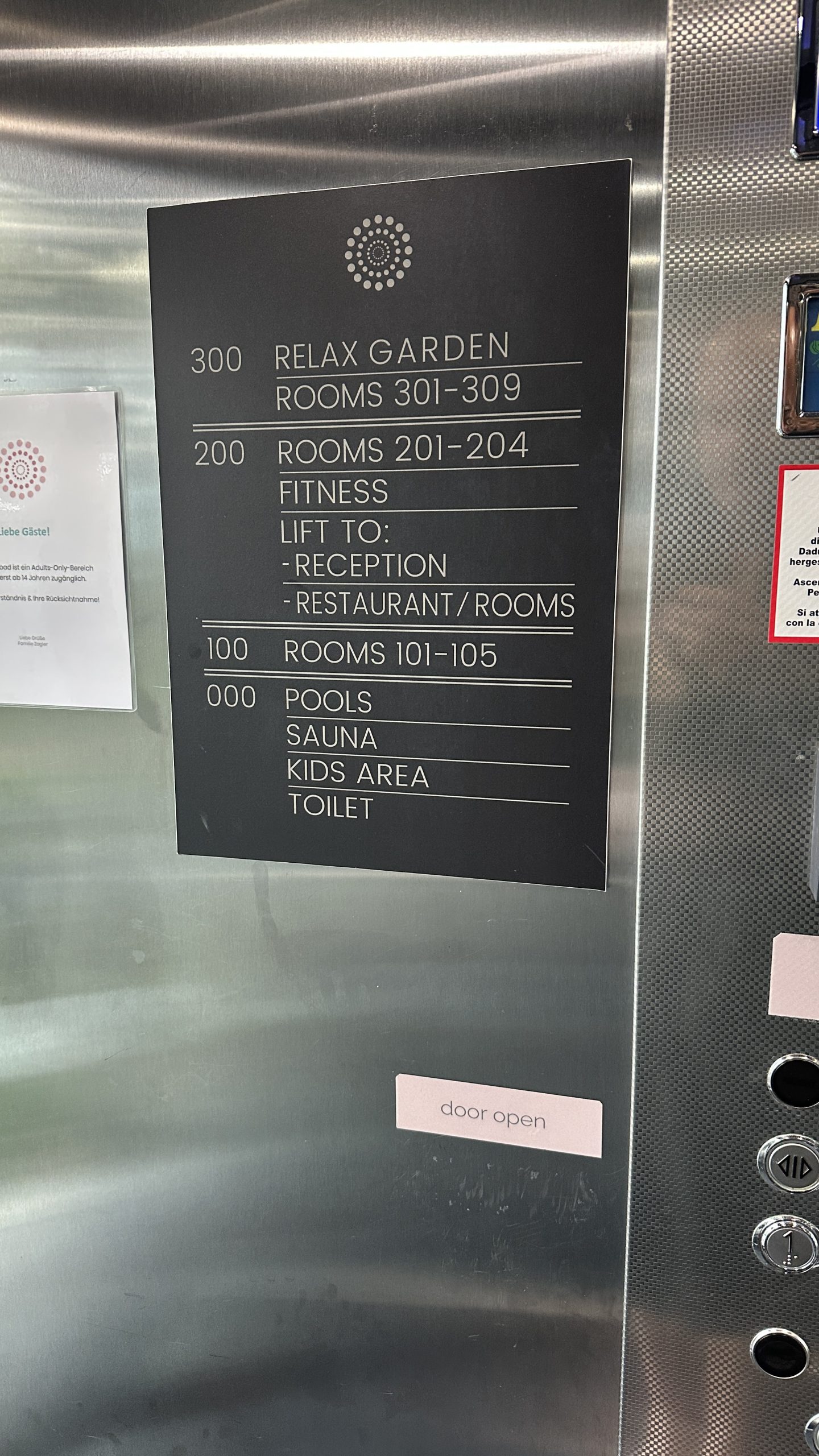Als ich gestern von der Sauna kam, war im Lift ein Paar mit einem Kind. Die sind im Aufzug 1 in der zweiten Etage ausgestiegen, ich in der dritten. Dann hab ich den Weg zu Aufzug 2 nur durch die Tiefgarage gefunden. Als ich in Aufzug 2 stieg, war das Paar da drin. Wir sehen uns an und lachen „Auch den Weg nach oben gesucht?“ „Ja“.