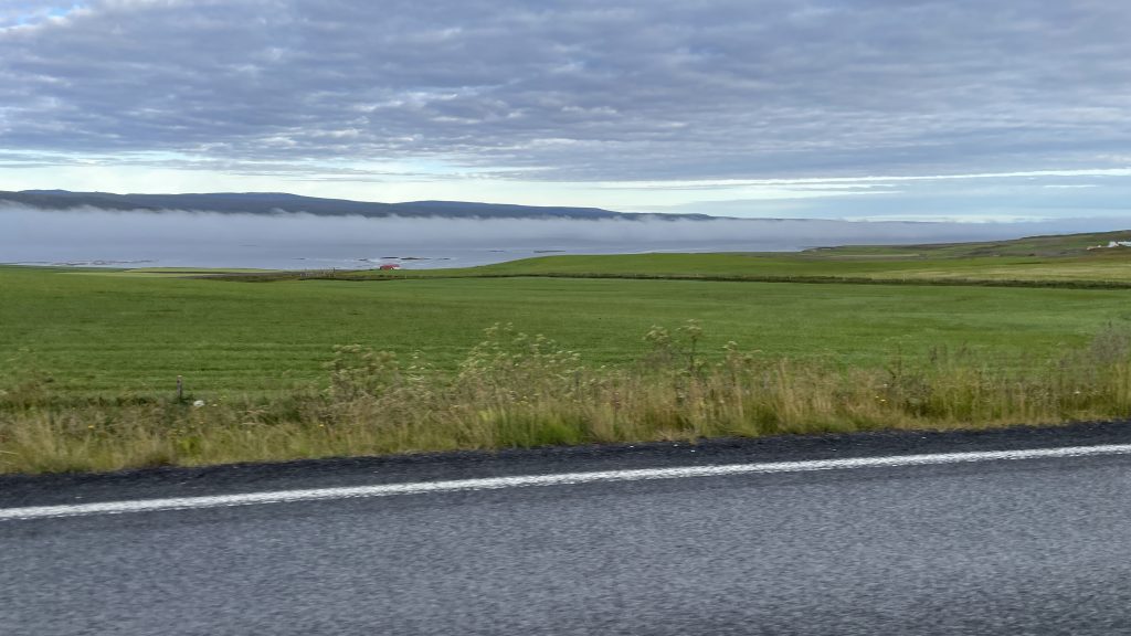 Im Zimmer ist kein WLAN, aber auf dem Parkplatz. Bei 6°C, nicht schön. Dafür ist Mobilfunk bei einem Balken 3G. Ob ich hier ein Zimmer für meine letzte Nacht auf Island morgen buchen kann? Da bin ich ist nicht sicher.
