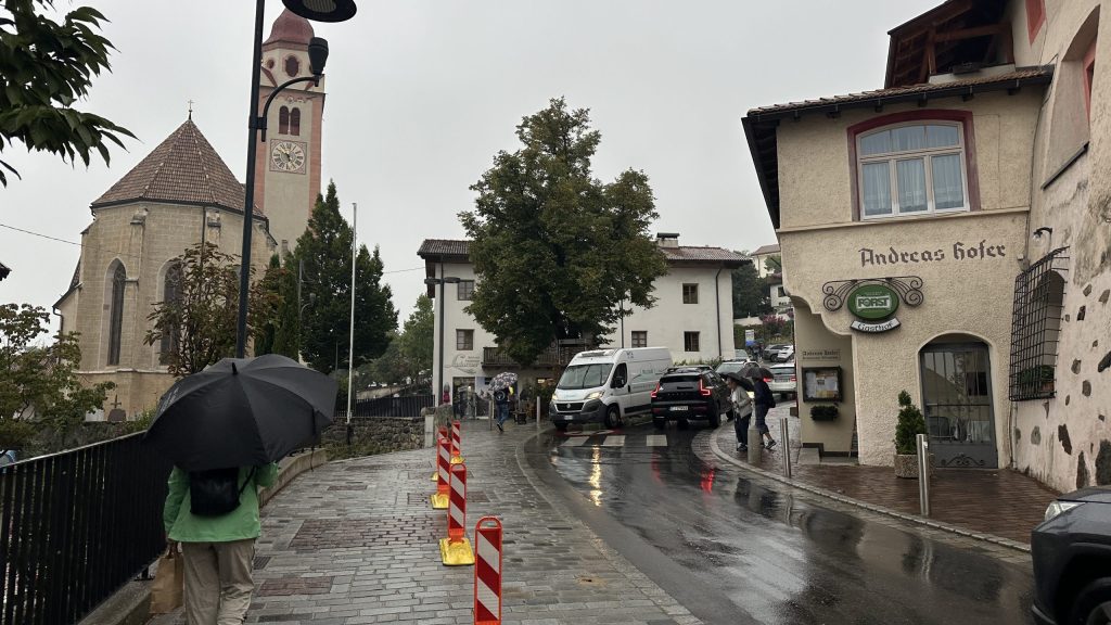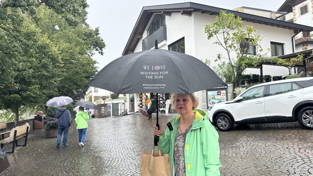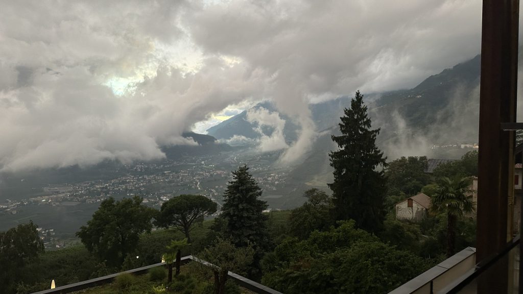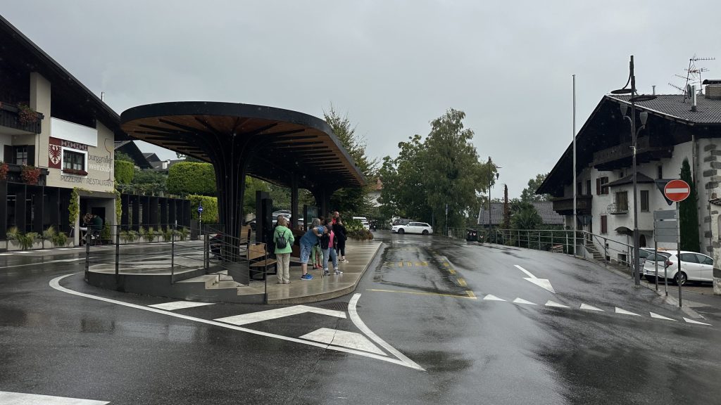 Bevor wir feststellen konnten ob es in Meran regnet, musste erst mal ein Bus kommen. Theoretisch fĂ€hrt er alle 15 Minuten, praktisch sind das min. 30 Minuten. Es gibt GerĂŒchte, die DB hat den Busbetrieb Tirol ĂŒbernommen.