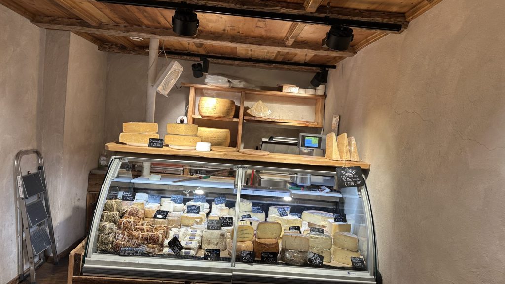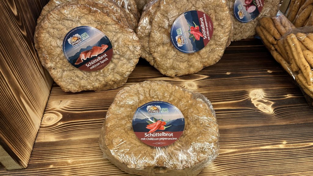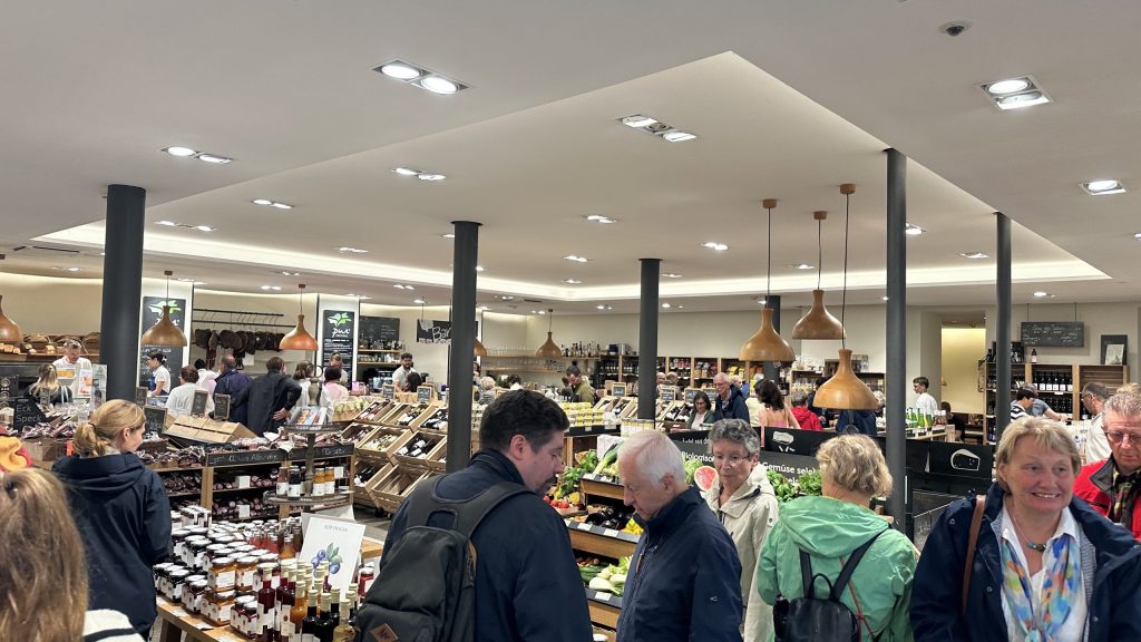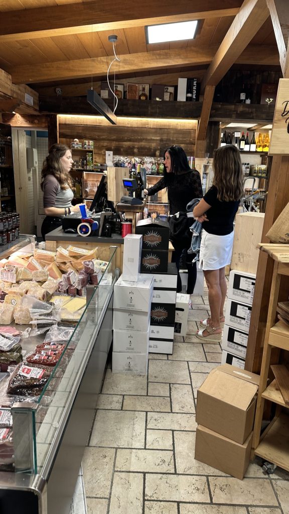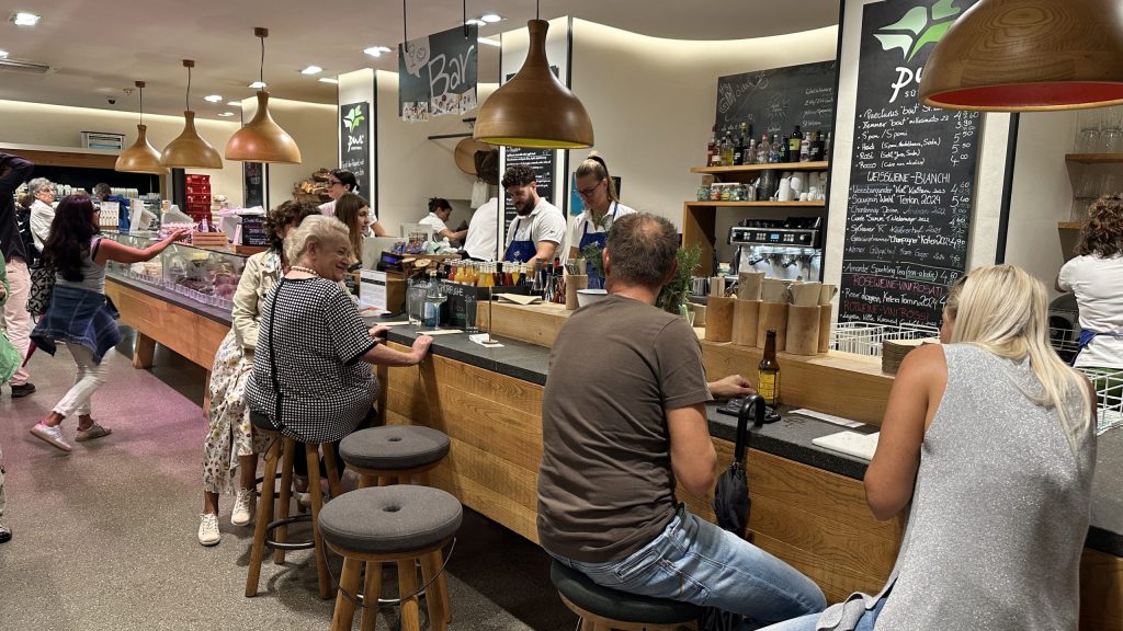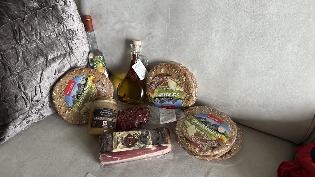 Und dann ging es mit dem Bus wieder zurĂŒck. Da wir jetzt schon lĂ€nger nicht mehr in einem Delikatessen GeschĂ€ft waren, nehme wir das erste direkt am Busbahnhof im Dorf Tirol.