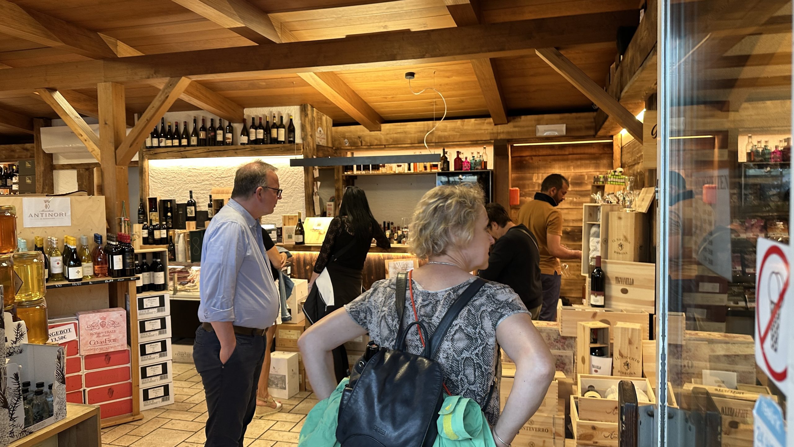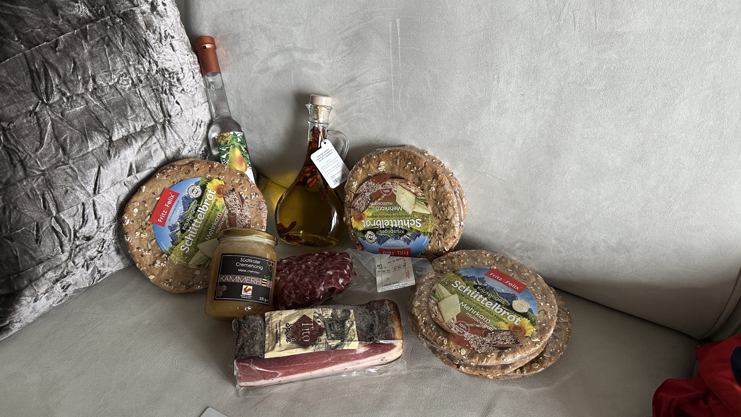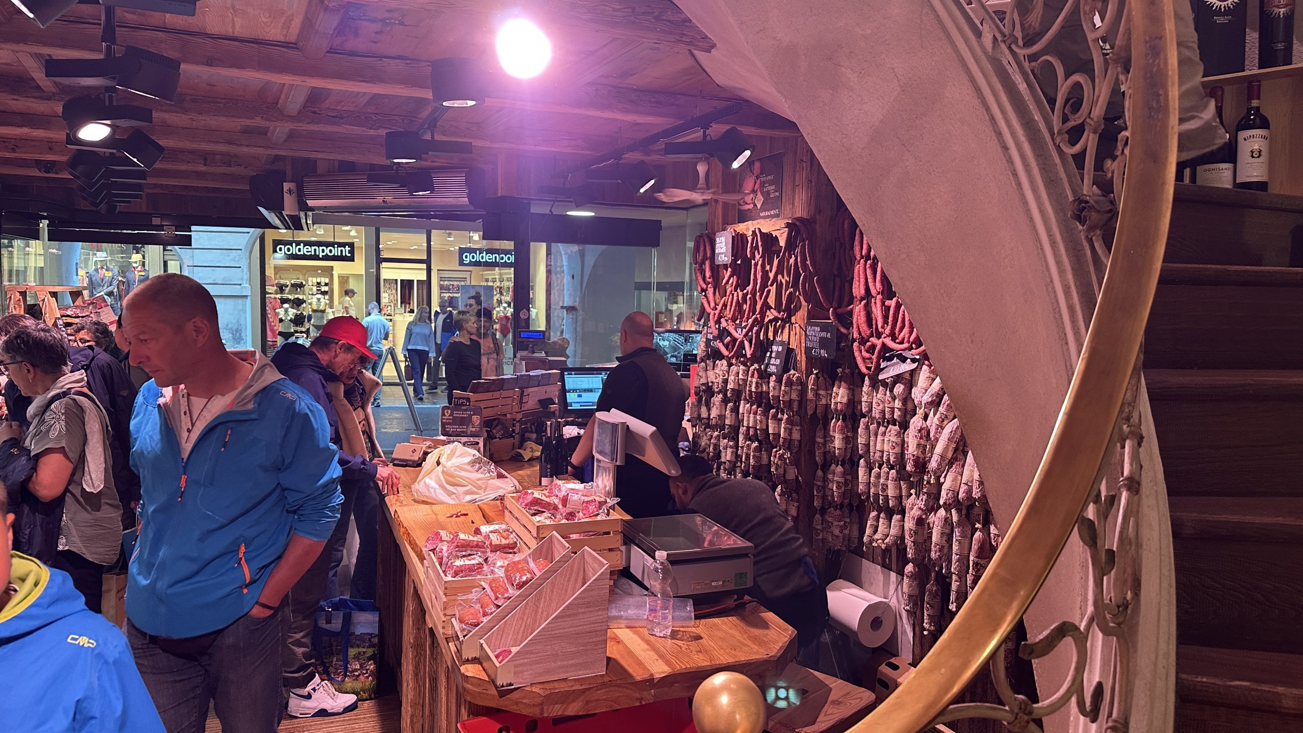 Und dann ging es mit dem Bus wieder zurĂŒck. Da wir jetzt schon lĂ€nger nicht mehr in einem Delikatessen GeschĂ€ft waren, nehme wir das erste direkt am Busbahnhof im Dorf Tirol.