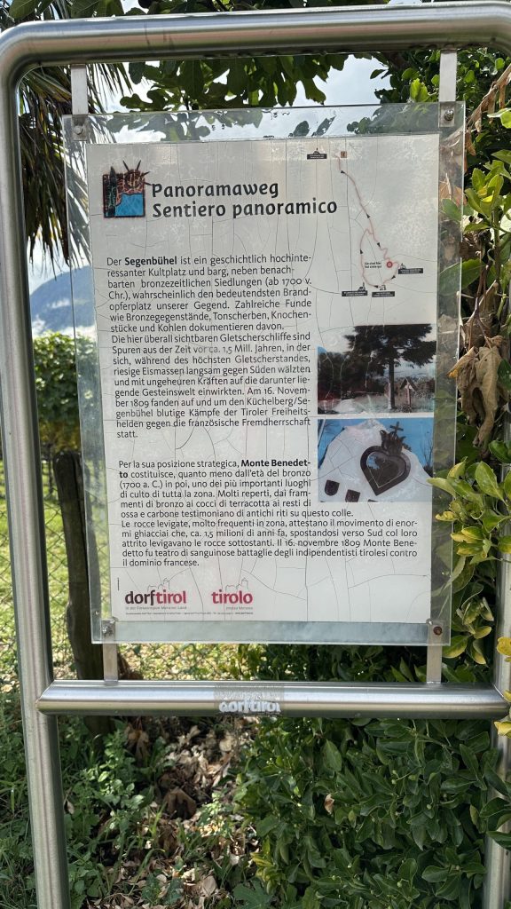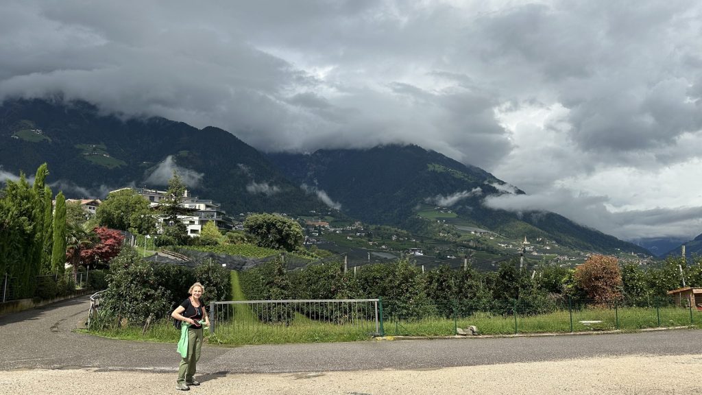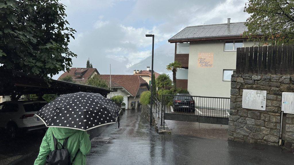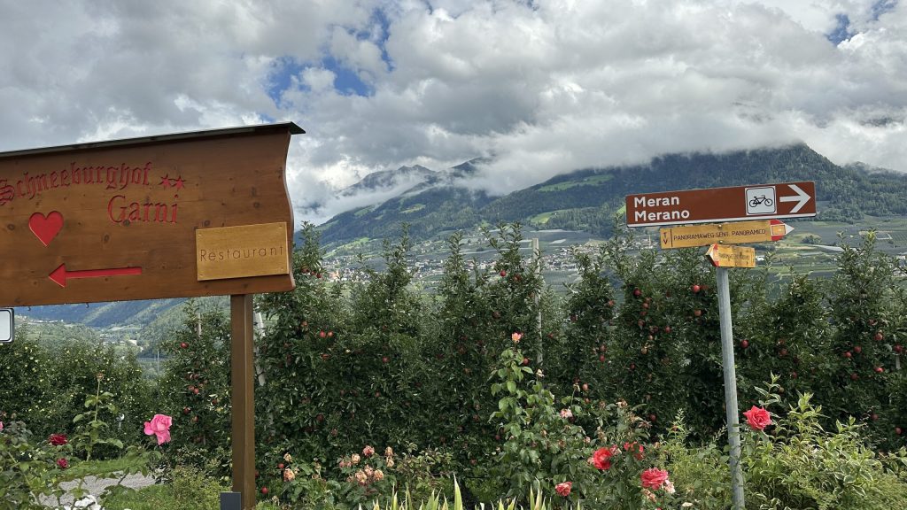 Nach dem Mittag beschließen wir den Panorama Weg nach Meran zu laufen. Der Rundweg ist ca. 6 km, und hat knapp 300 hm. Der Regen hat nachgelassen, es gibt sogar etwas Sonne. Ich glaube das Wetter hält sich nicht an die Vorhersage.