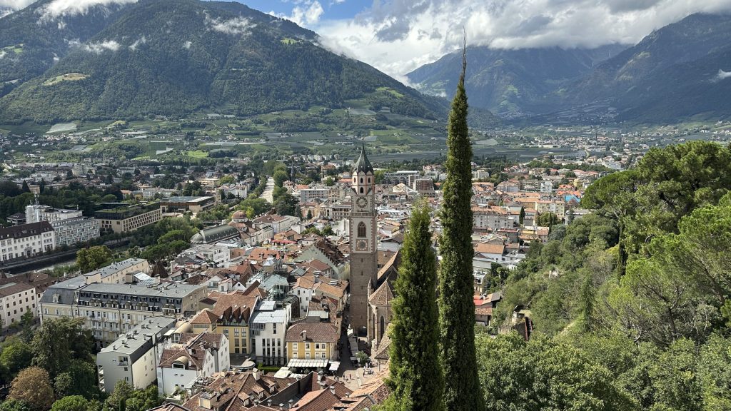 Von oben hat man einen schönen Überblick über Meran und den Verlauf der Passer.