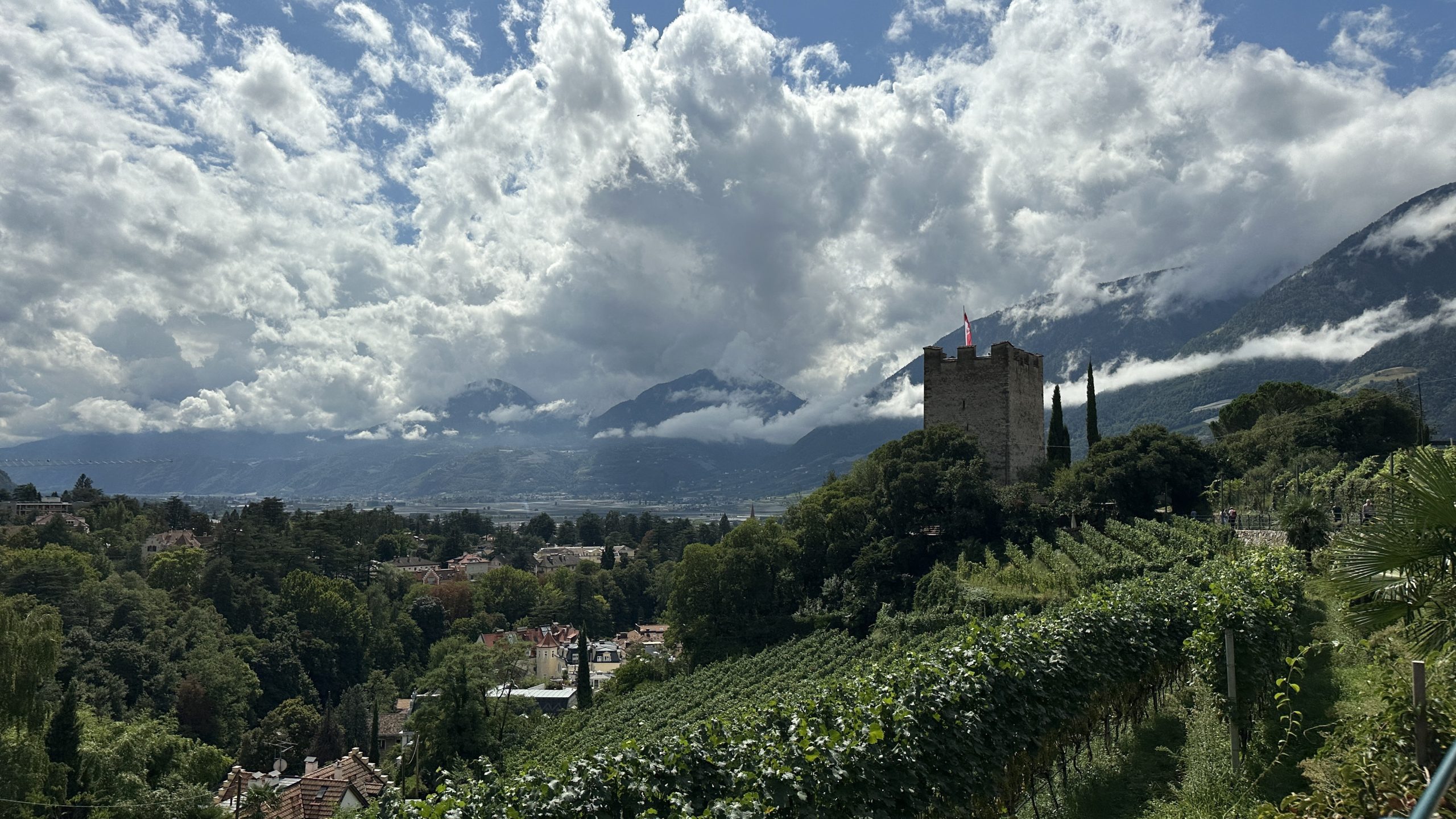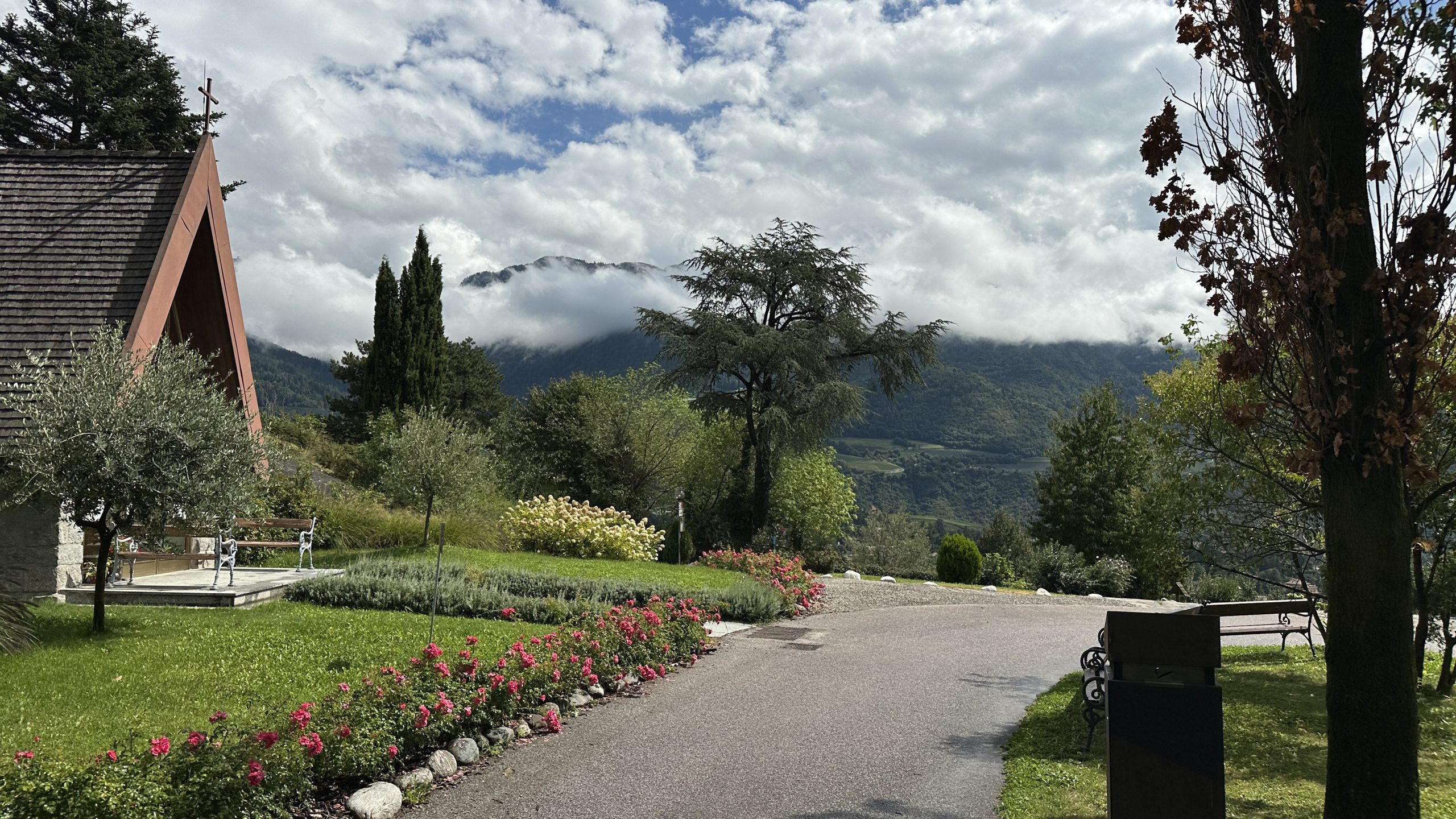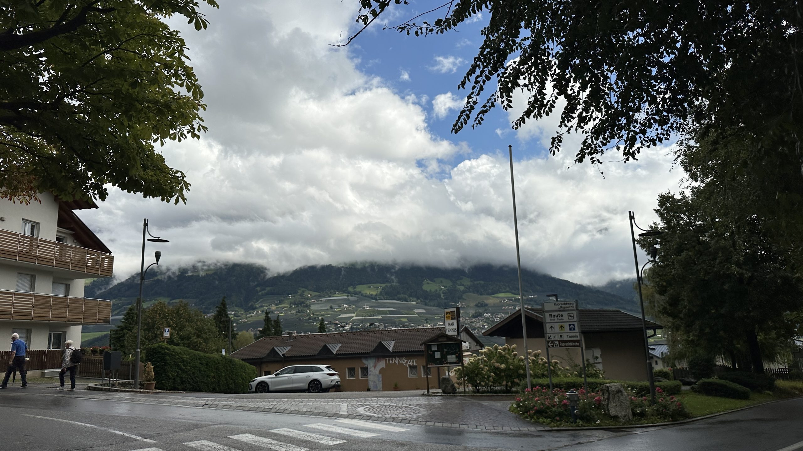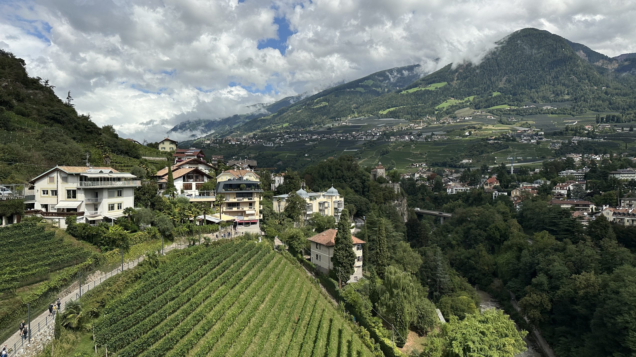 Nach dem Mittag beschließen wir den Panorama Weg nach Meran zu laufen. Der Rundweg ist ca. 6 km, und hat knapp 300 hm. Der Regen hat nachgelassen, es gibt sogar etwas Sonne. Ich glaube das Wetter hält sich nicht an die Vorhersage.