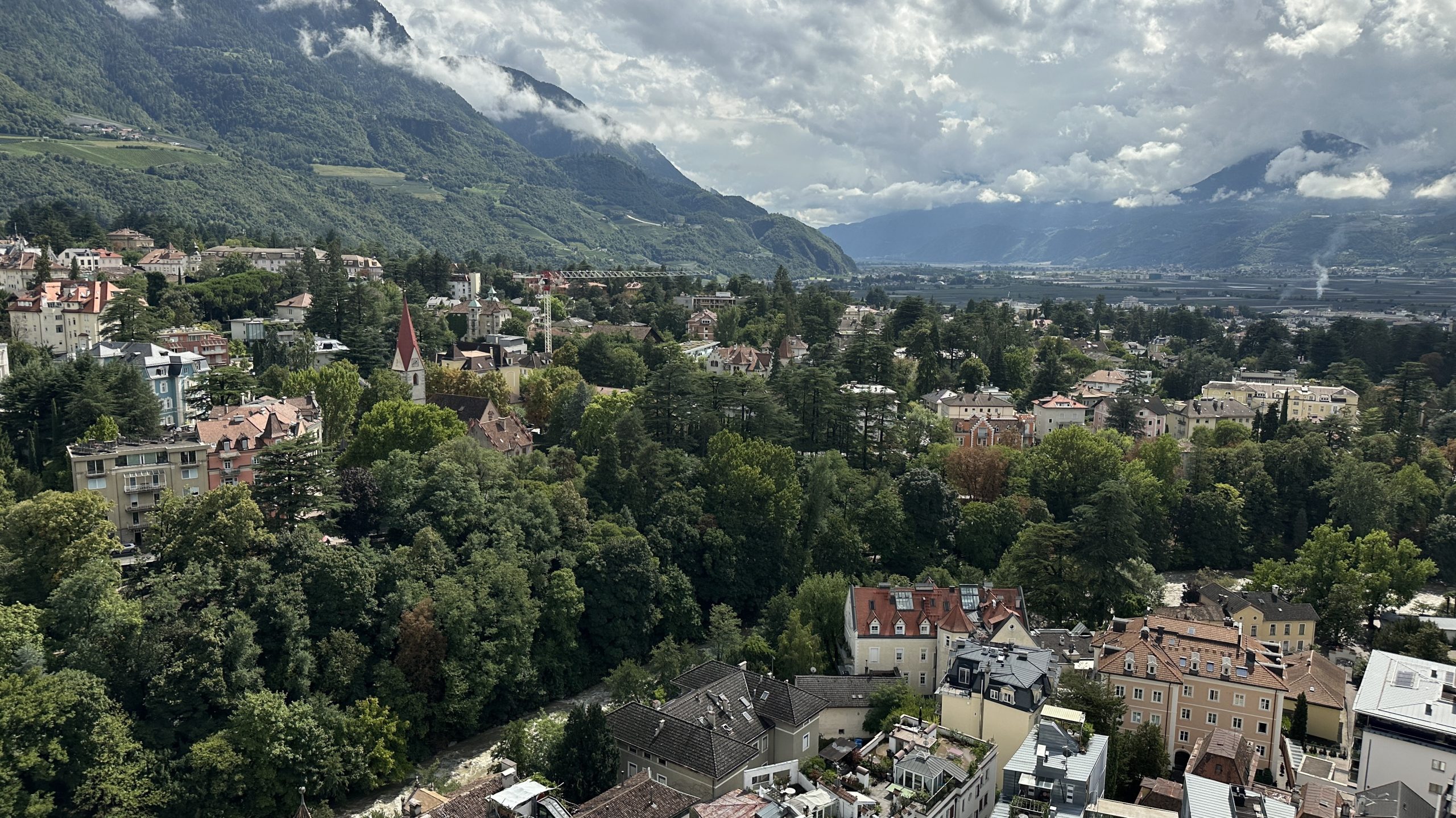 Von oben hat man einen schönen Überblick über Meran und den Verlauf der Passer.