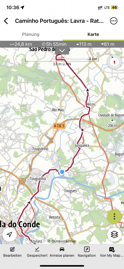 Für morgen ist eine Etappe bis Barcelos geplant, 15 km. Übermorgen eine Etappe von 19 km. Wenn ich wieder früh loskomme, könnte ich das schaffen. Mal sehn, was es für Möglichkeiten gibt dazwischen zu übernachten.