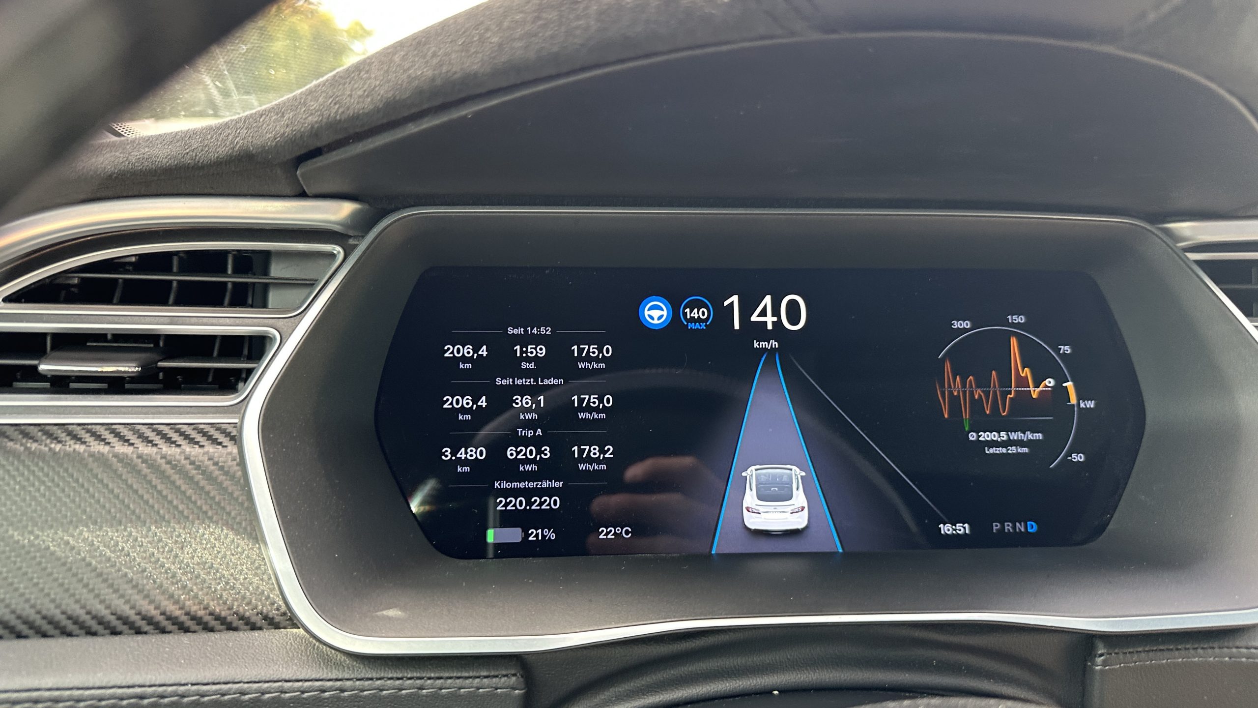 Um 20:15 waren wir zu Hause, und hatten noch eine 10 Minuten Ladung bei Greet and Seet in Haan. Ich war etwas schneller unterwegs, und das Auto meinte eine Zwischenladung wegen zu geringem Energielevel am Ziel einlegen zu müssen. Dann wollte das Navi nicht die A46 bis zur A535 in Wuppertal. Ich hab das ignoriert, und musste feststellen, dass die A46 wegen Brückenabbruch gesperrt war. Eine kleine Umleitung durch das zerklüftete Wuppertal war erforderlich.