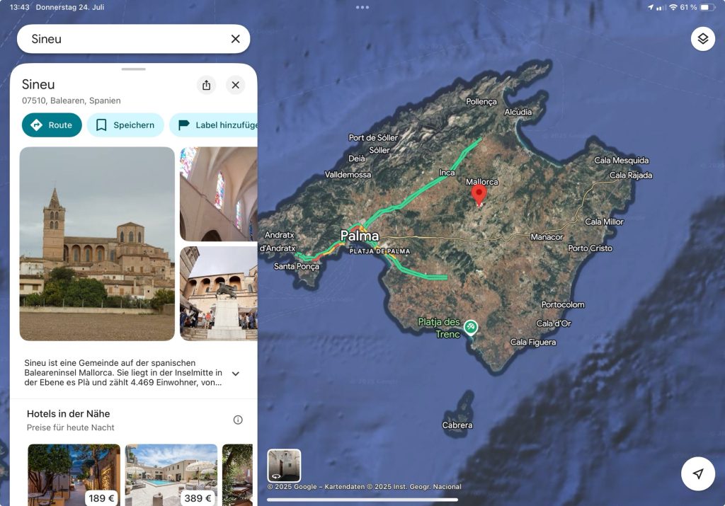 Das Problem sind die Unterkünfte. Was ich im Oktober an Preisen bei booking.com und AirBnB gesehen habe, erinnert eher an kaufen als an mieten. Zusätzlich brauche ich einen Parkplatz für das Auto, was in der Nähe von Andratx nicht einfach ist.