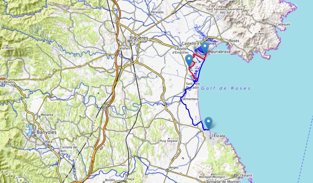 Das sollte ich – basierend auf meinen Erfahrungen der Camino Wanderung – in vier bis fünf Tagen schaffen. Das Auto würde ich in Empuriabrava lassen, und dann zurück mit einem Bus.