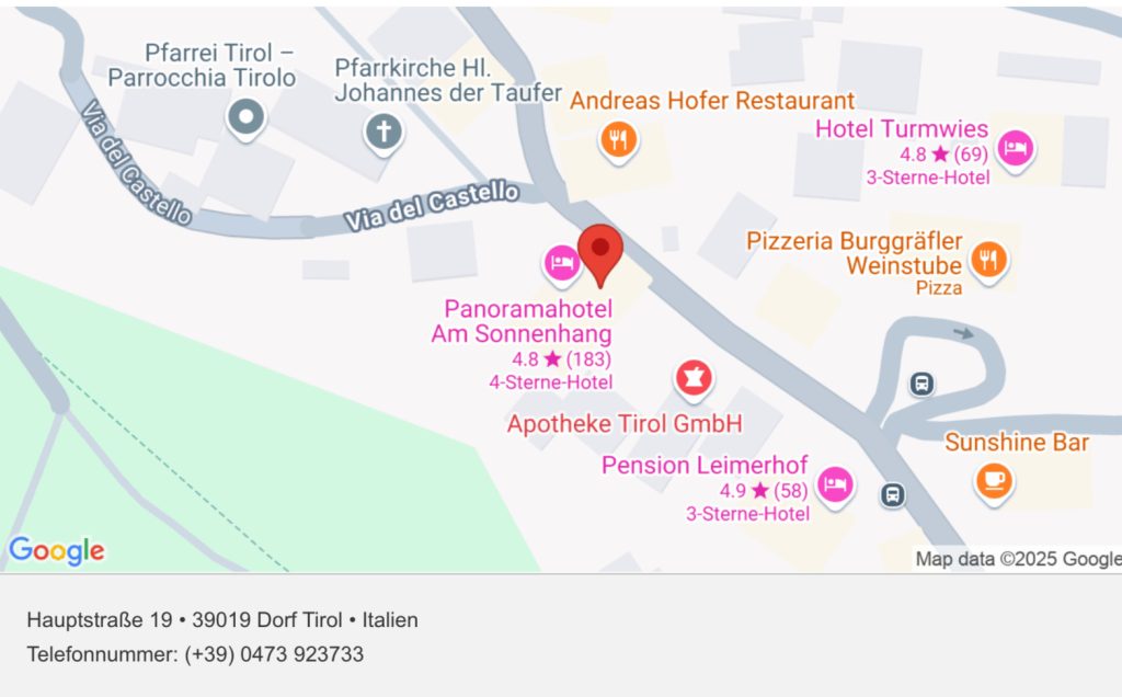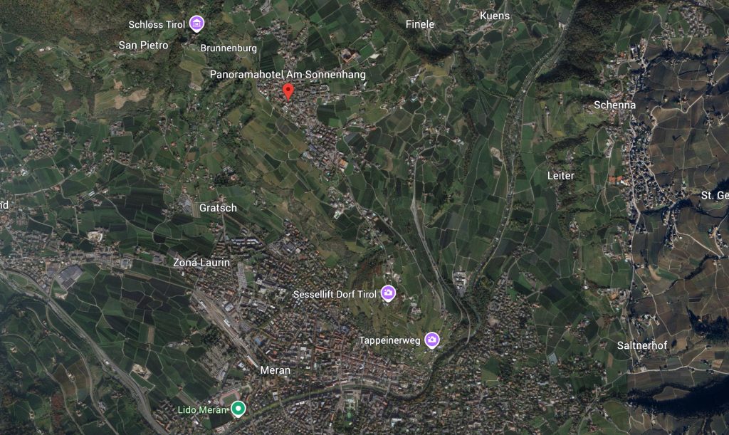 Von Meran Bus 221 oder Sessellift zurück nach Dorf Tirol (15–20 min).