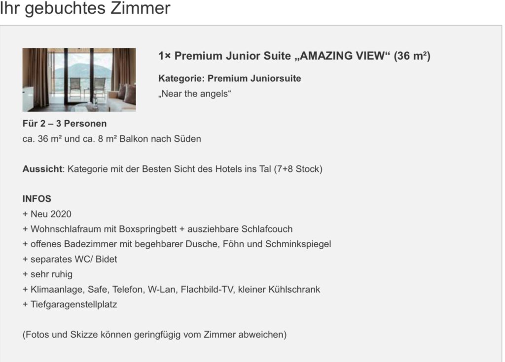 Vom 23.08.2025 bis 30.08.2025 haben wir im Dorf Tirol im Hotel Am Sonnenhang eine Juniorsuite gebucht. Ich bin gespannt was die sagen, wenn wir alten Rentner dort auftauchen.